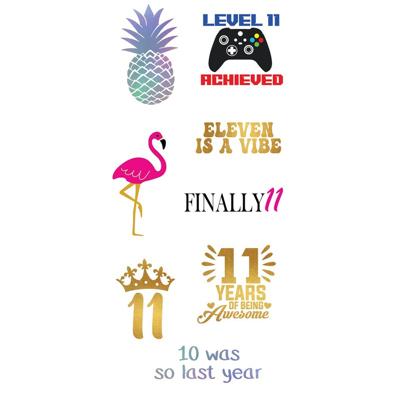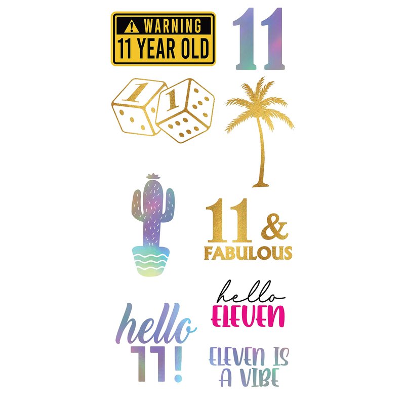11th Birthday Temporary Tattoos (4 Pages) - 11th Birthday Party Supplies, Ideas, Gifts and Decorations
