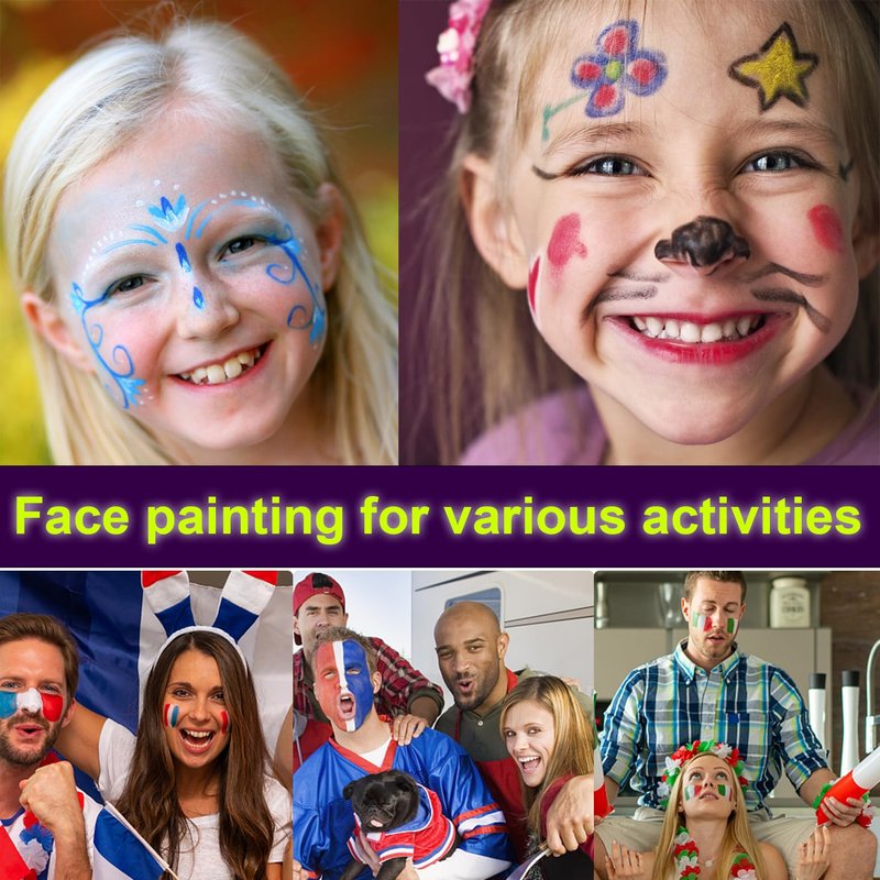 - [Glow-in-the-dark effect]:Glow in the dark face paint crayons applied to face and body will glow under UV light and black light. The crayon will not glow by itself under normal light.