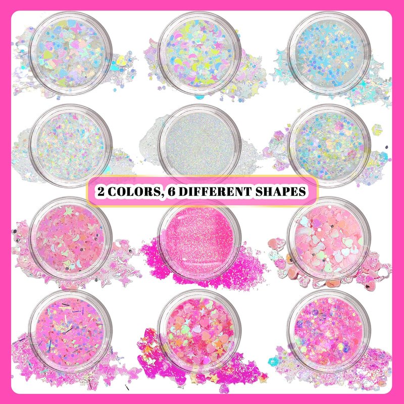 - 【Face Glitter】12 colors body glitter gel look very pretty, and are made with contains large number of intense holographic sequins, the color and shine of the laser sequins vary with the perspective,and give a bold and bright effect on various body parts including face, body, and hair. Glitter makeup from every angle,giving you a glamorous sheen,glow in the dark glitter.Glow your body for every occasion