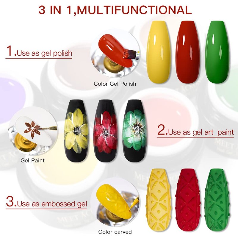 - ❤【PAINT GEL NAIL POLISH KIT】: This painting gel nail polish set includes 12 colors 2 in 1 multi functional gel in a set(5ml/bottle). You can use it as a regular color gel nail polish set or paint gel. Perfect for beauty lovers and nail art desiners, DIY at home. This is also a fantastic, unique gift for family member or friend
