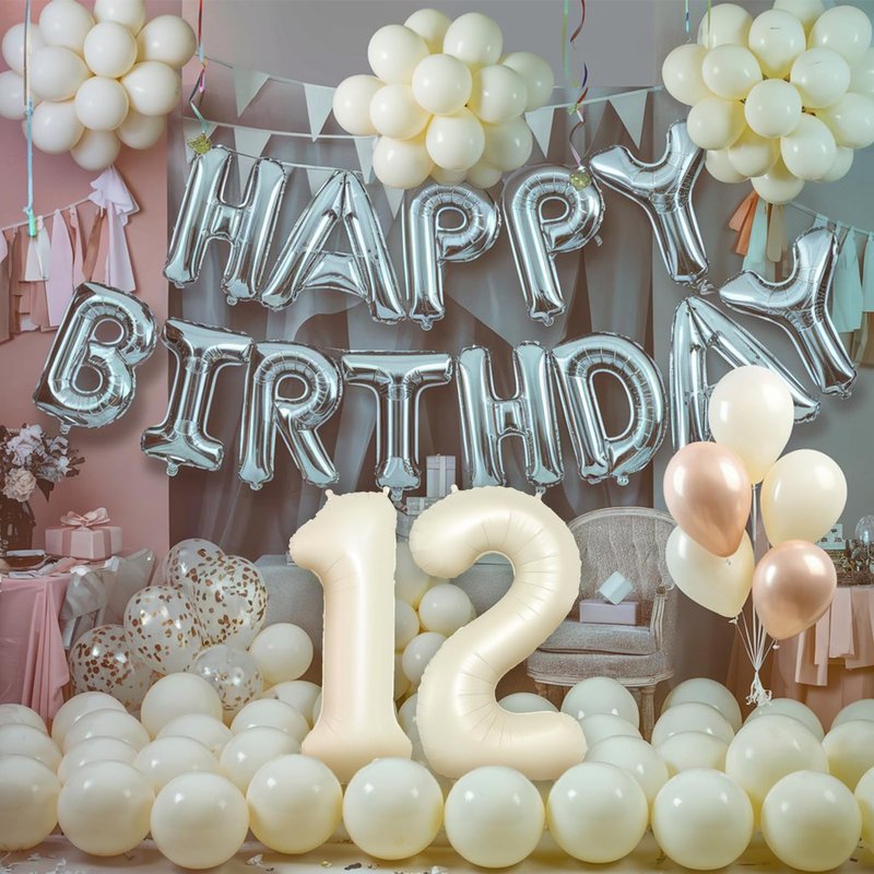- Premium Quality: Our 12th beige birthday decorations are crafted from quality foil, it offer superior gloss and quality, ensuring they are less likely to burst. No strong odor, children can use them with confidence. Novel suit combination suitable for any event, apture worthy memories with these eye-catching, shiny number balloons that make your event stand out in every snap!
