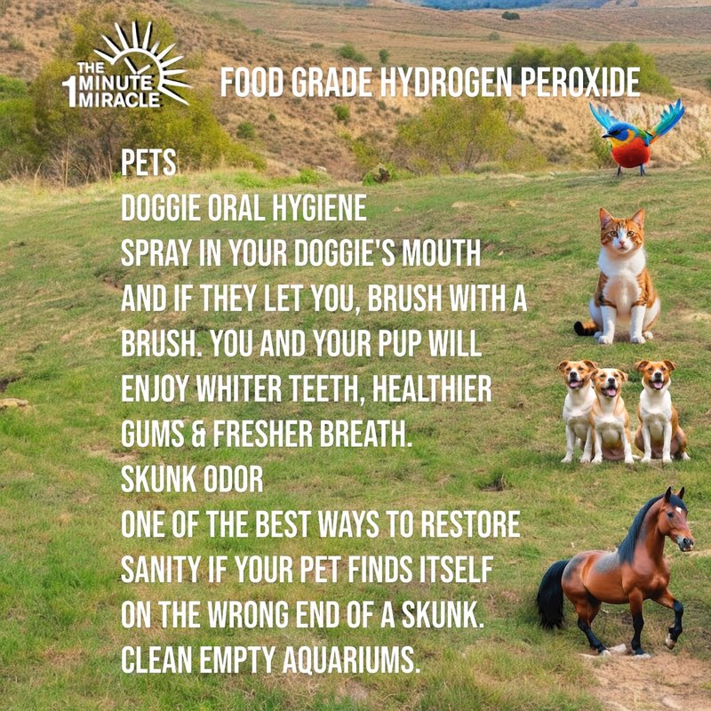 The One Minute Cure Book and 1 Bottle 12 oz With 1 FREE 1 oz Bottle Dropper empty for your convenience. 12% H2o2. No Stabilizes, No Petroleum, No Benzene, No Additives and No Heavy Metal. H2o2 Hydrogen Peroxide Food Grade Certified #7722-84-1. Our Policy is 100% Customer Satisfaction. Money-Back Guarantee. We will honor our policy no questions ask. Our H2o2 Grade Hydrogen Certified supplier manufactured this product in accordance with the Food Chemical Codex in Quart to Gallon sizes. There are ZERO toxins in true our certified Hydrogen Peroxide, only pure oxygen to be released. Our supplier of Food Grade Hydrogen Peroxide Certified that our product was sampled and inspected by the U.S. Department of Agriculture for your safety. 20% and over is dangerous, explosive and Hazmat. The dropper needs to be kept a little loose to allow it to vent and to avoid pressure built up in the bottle. OUR POLICY IS 100% CUSTOMER SATISFACTION OR MONEY BACK GUARANTEE.