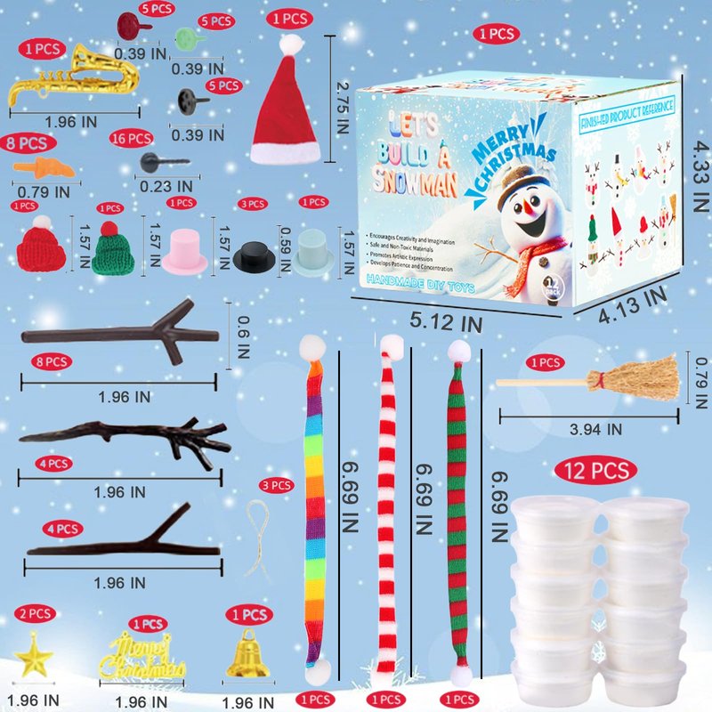 - Christmas Snowman Craft: Build a snowman kit, an entertaining and educational DIY toy. The winter snow toys kit through rich production content and diverse accessories, kids' clay kits can fully stimulate children's creativity and imagination.