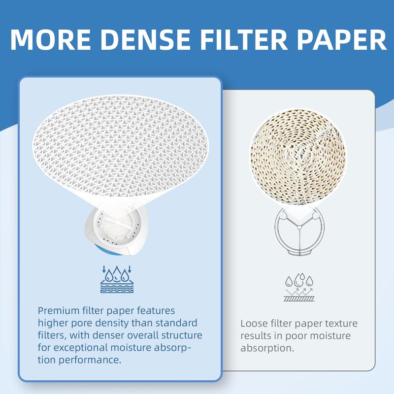 - Larger Filter Paper Filtration Area: Advanced shell design removes obstructions that block filter paper absorption, maximizing the filter paper filtration surface area for superior water uptake and more efficient, comfortable humidification performance.