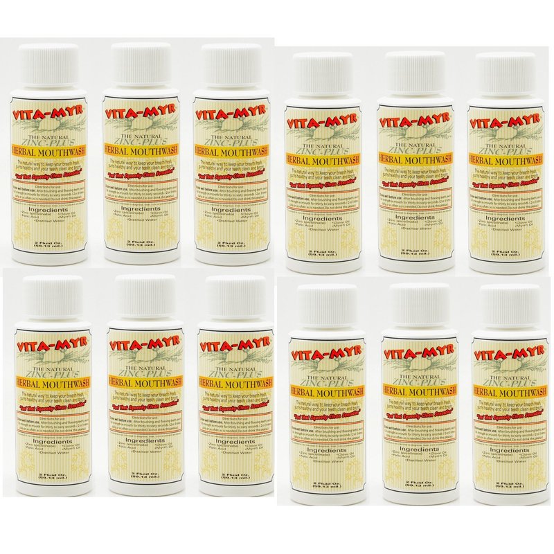 12 Pack VITA-MYR Natural & Effective Herbal Mouthwash 2 Oz Travel Size