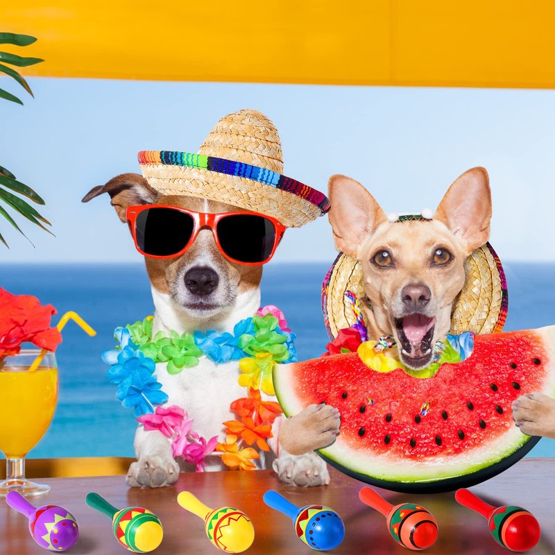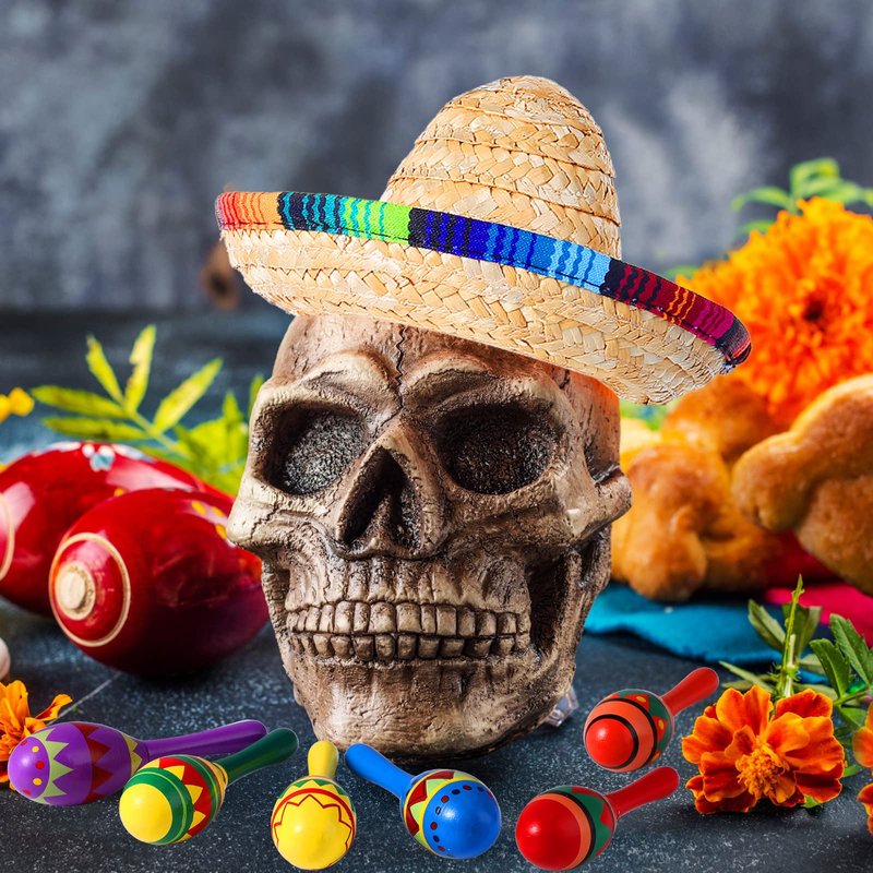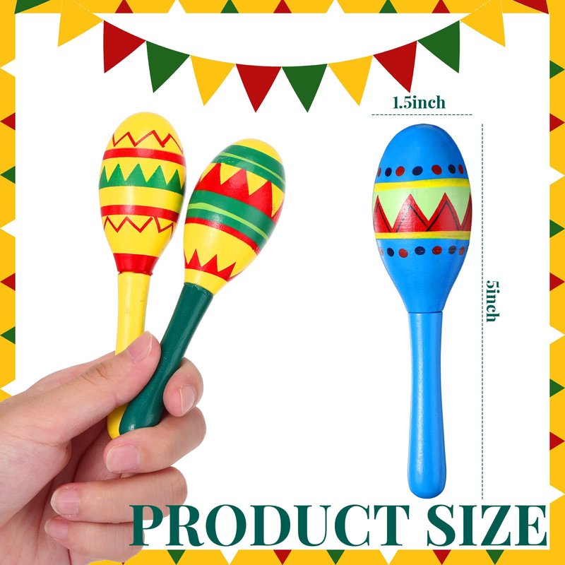 - Safe to Use: the colorful fiesta maraca is made of quality wood, sturdy but lightweight, not easy to break, deform or fade, with no extra burrs and wood chips, which won't cause hurts to your hands; The Mexican sombrero is made of straw, which will immediately restore its original appearance, even if it is deformed, supporting a long term use