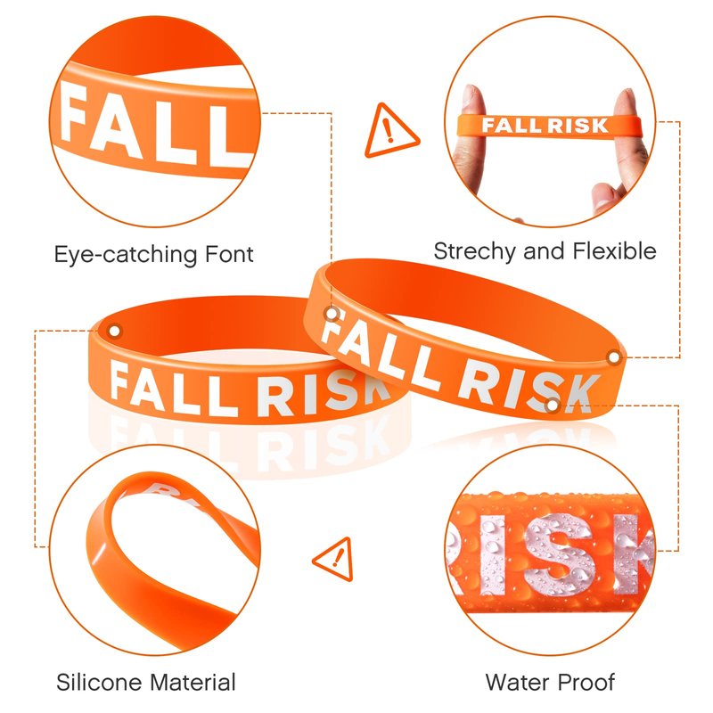 - Considerate Design: the design of FALL RISK text is suitable for patient or elderly; The fall risk silicone wristband with bright color is worn on the wrist to remind you to check anytime and anywhere, providing security for yourself, your friend, lovers and family