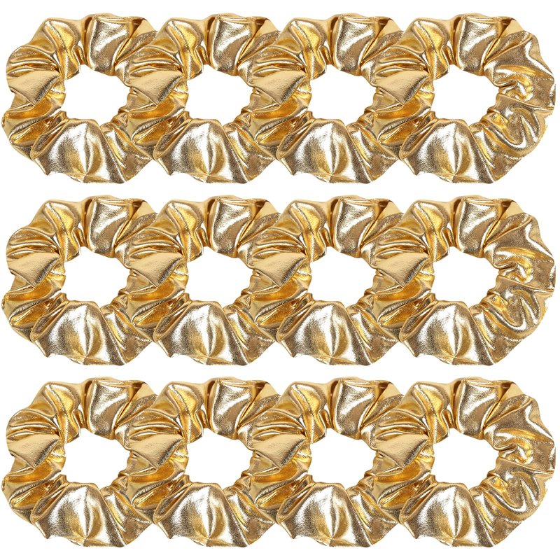 12 Pcs Faux Leather Jacket Cheer Hair Scrunchies For Thick Hair School Performance Scrunchy Sports Ponytail Holder Wrist for Girls Cosplay Show (Gold)
