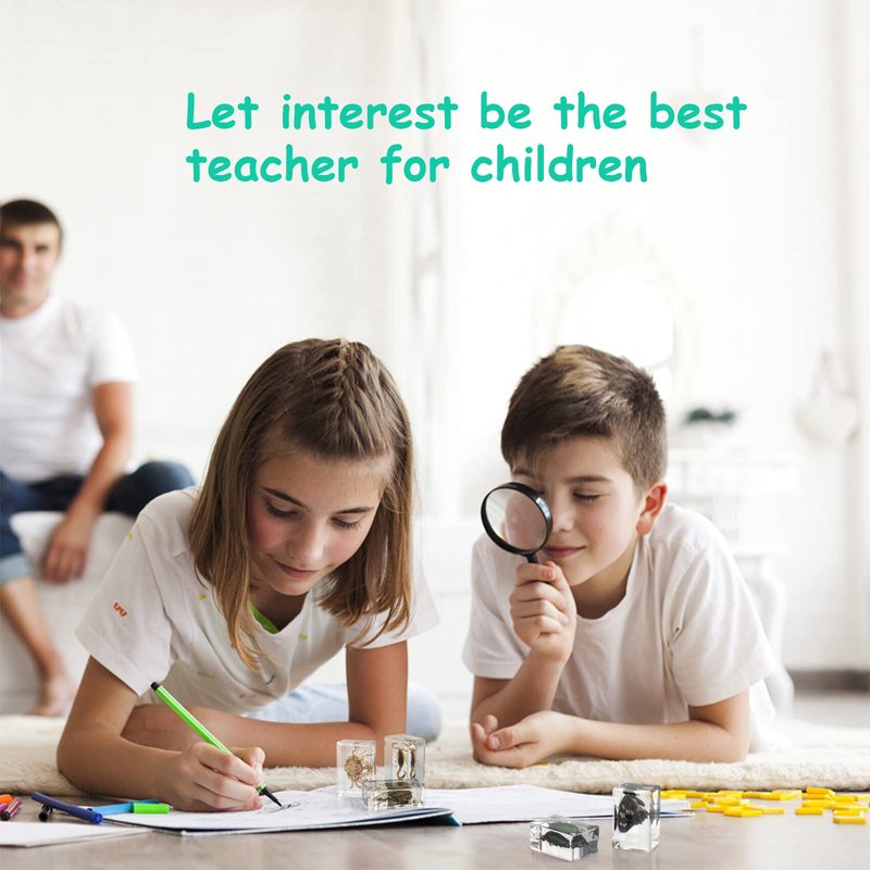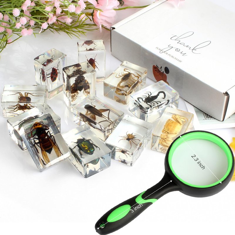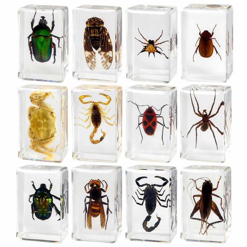 REAL INSECT RESIN SPECIMEN SET Every great progress of mankind began with a little curiosity. Curiosity/exploration and discovery of the unknown are innate in every human being. This is the inspiration and meaning of making this product. Hand-crafted clear resin insect specimen set. Each piece is carefully selected by us and crafted by intricate hand. These real insect specimens make children interested in natural science. As they scrutinized the specimens with a magnifying glass, Questions kept popping up in my head: What do they feed on? What kind of environment do they live in? How do they protect themselves in nature? Whether it's a birthday present/Children's Day present/Christmas present, Every child will be pleasantly surprised by such a product. Let interest be their best teacher!