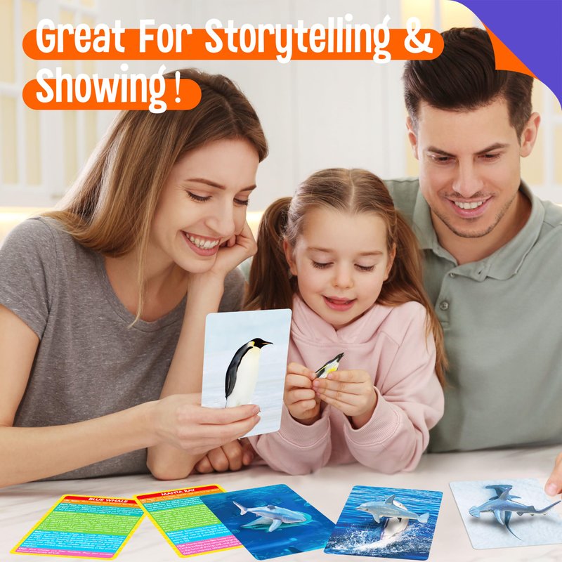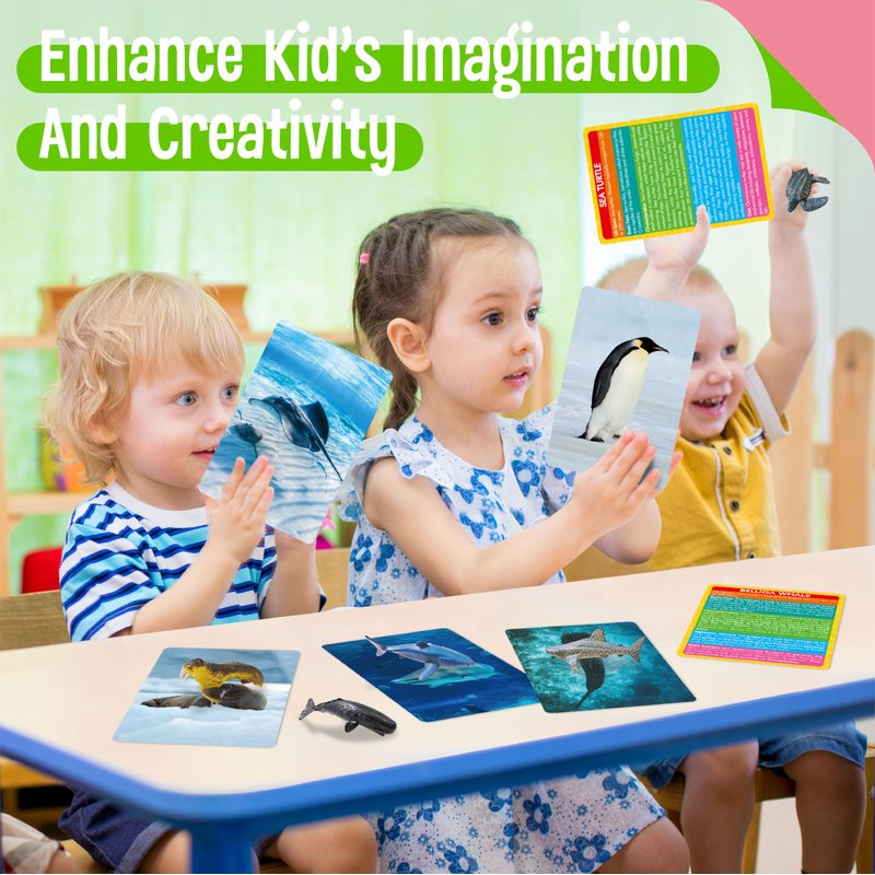 Super Value Pack: With this educational learning toy set, you will get 12 different marine animal figurines and 12 matching introduction flashcards with detailed basic information on these animals. Children can expand knowledge about marine animals while playing these marine toys at the same time.