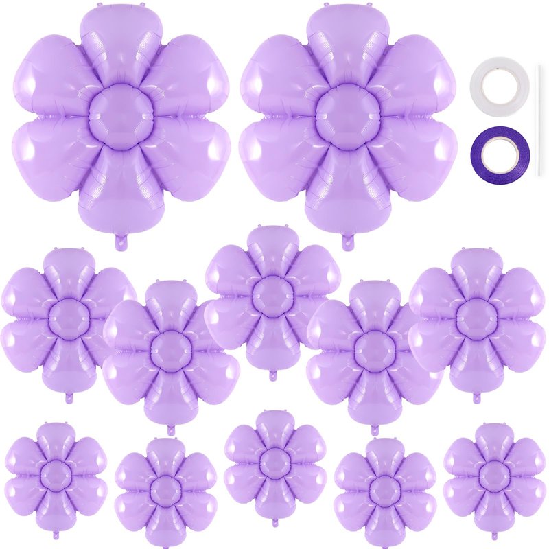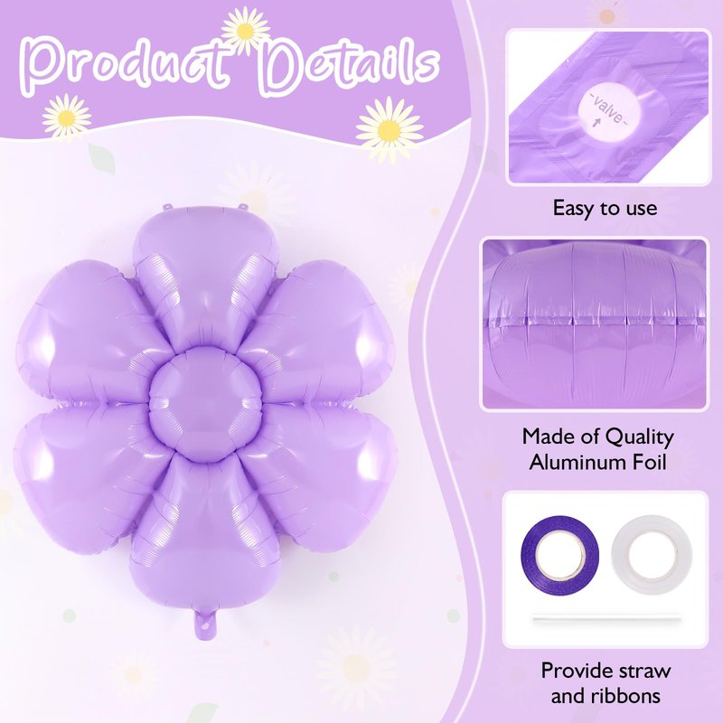 - Package includes: You will receive a set of 12 pcs purple daisy balloons, including 2 pcs large 43 inch daisy balloons, 5 pcs medium 28 inch daisy balloons, and 5 pcs small 20 inch daisy balloons; In addition, there is a roll of yellow ribbon, a roll of white ribbon, and an 8 cm/3.1 inch straw in sufficient quantity. Different sizes of daisy balloons meet your daily party use and replacement needs