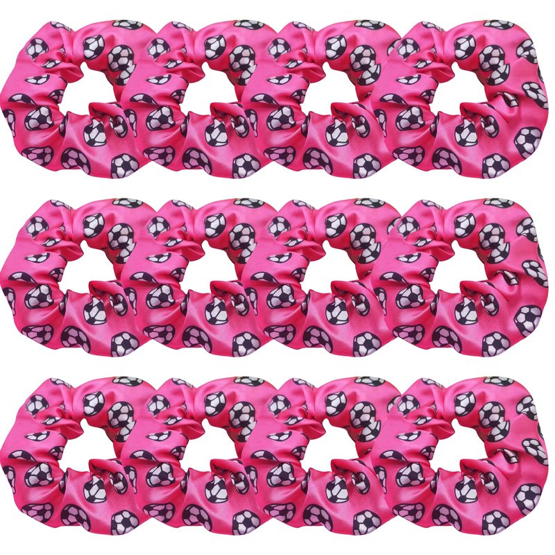 12 Pcs Shiny Soccer Hair Scrunchies Cheer Soccer Uniforms Scrunchie School Performance/Sports/Practice/Party/Gymnastics Scrunchie Ponytail Holder Wrist for Girls Cosplay Show (Pink)
