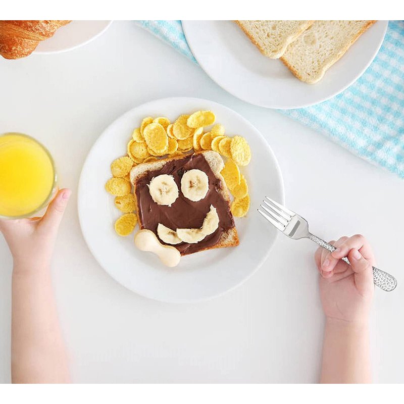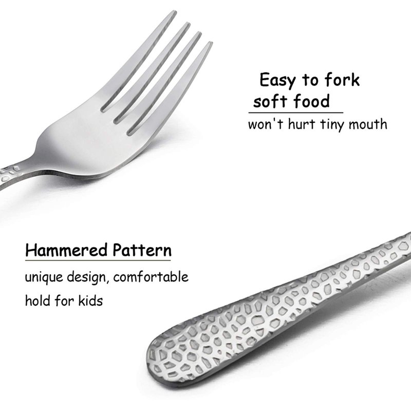 - ✅ PICK UP FOOD EASILY(^ᴗ^) - Smooth edge, Proper thin fork tines make it easy for kids fork soft food by themselves, Suitable for toddlers to practice and adapt to real silverware