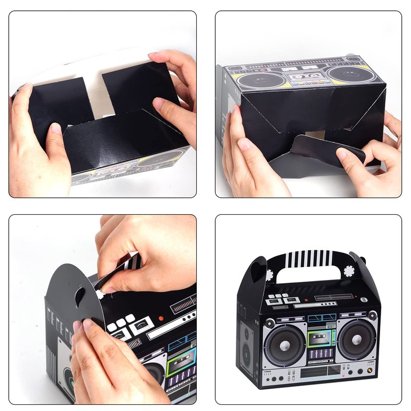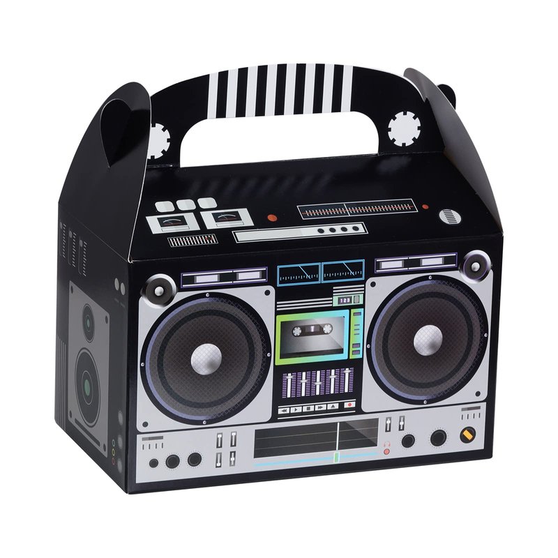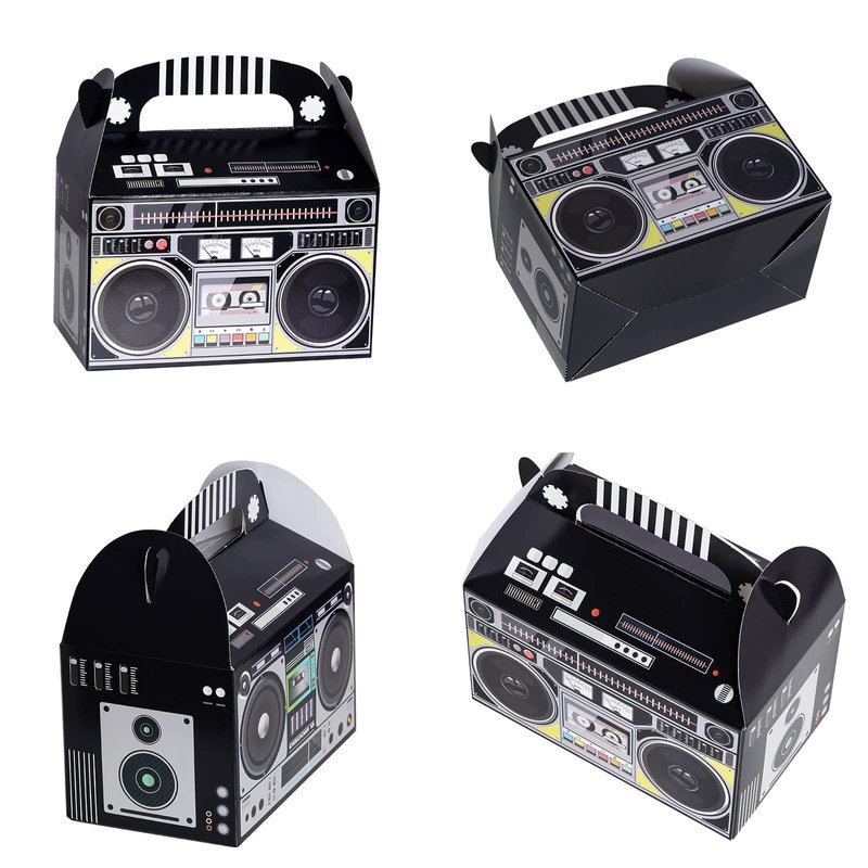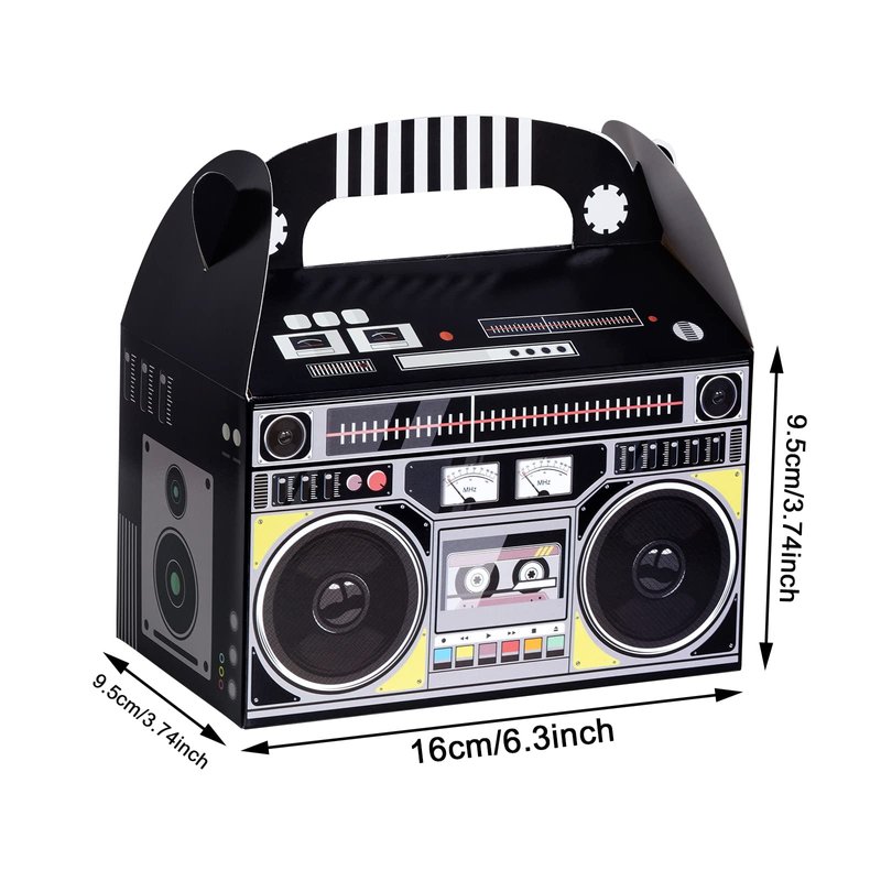 - Applications: These boom favor boxes can be used to holding small things like cookies, chocolates, snacks, candies, small toys, etc. And they're very suitable for party favors decor, 80s themed party, vintage retro theme party, hip hop theme party, Halloween party, birthday party, party table centerpieces, etc.