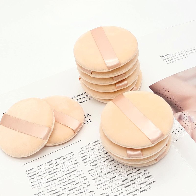 12 Pieces Cotton Powder Puff,3.15 inch Round Portable Soft Sponge Cosmetic Puffs,Velvet Powder Puff with Ribbon Band Handle for Loose Powder Body Powder Makeup Tool