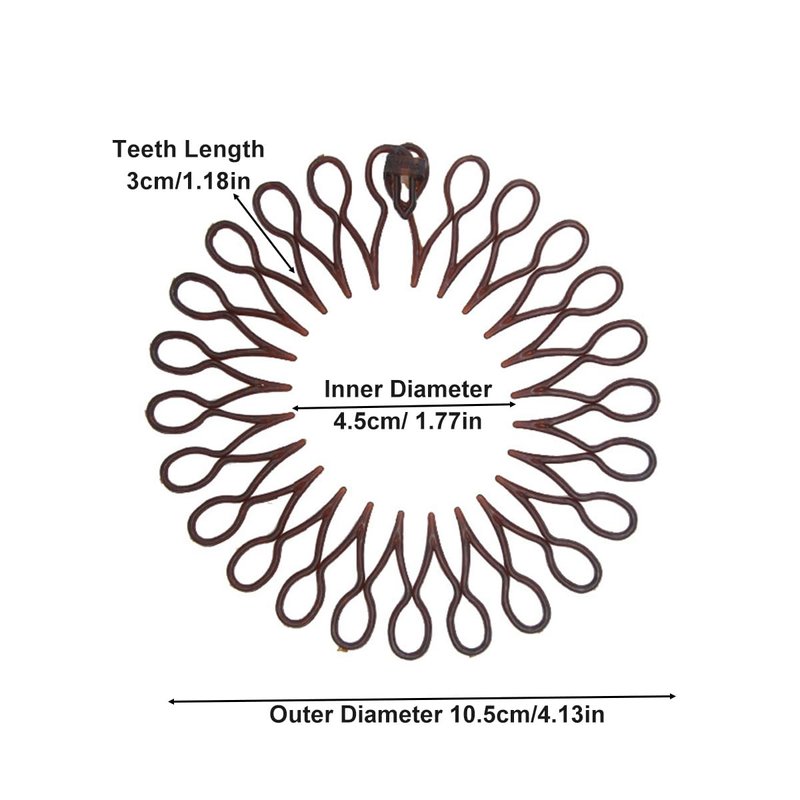 - 【Package Includes】12 pieces Flexible Circle Headbands(Brown). Our full circular stretch combs are designed in a universal size, has an external diameter of approx. 10.5cm/ 4.5 inches when it's closed and has an inner diameter of approx. 4.5cm/ 1.77 inch, fits most head sizes. Feature a in classical style design, ideal for most hair types, like thick, thin, long, straight or curly hair.