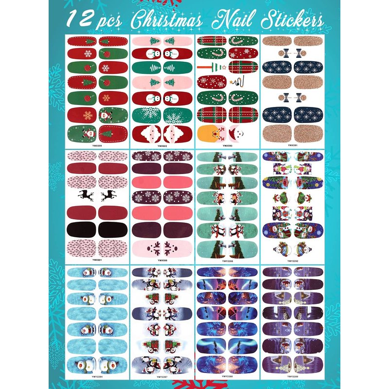 - ๐ CHRISTMAS NAIL STICKERS: This package included 12 Sheets Christmas full wrap nail stickers, includes all sorts of classic Christmas-style patterns: Christmas tree, Santa Claus, snowflake, snowman, penguin and so on, which can offer you multiple choices and fit for any party in Christmas.