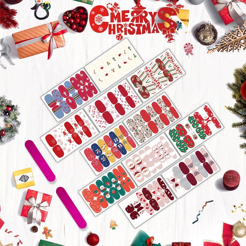 - Christmas Nail Stickers: The pack includes 12 sheets Christmas full wraps nail art sticker decal, rich colors and classic mysterious patterns, such as Christmas tree, Snowflake, Elk, Santa Claus, Christmas hat etc. which can offer you multiple choices, satisfy your rich imagination of nail DIY and create your own Christmas.