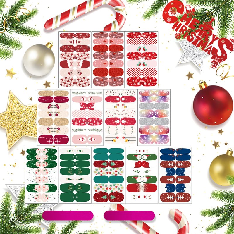 - Christmas Value Pack: You will get 12 sheets Xmas full wraps nail art sticker and 2 piece nail files, rich colors and classic patterns, such as Santa Claus, Christmas tree, snowflake, snowman, reindeer etc. which can offer you multiple choices, satisfy your rich imagination of nail DIY and create your own Christmas.