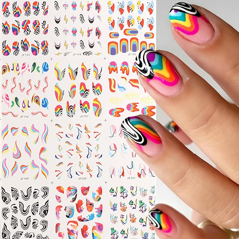Quantity: 12 Sheets Colorful Graffiti Nail Art Stickers