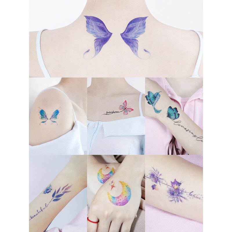 - High-Quality, Vibrant Colors:These temporary tattoos feature stunning, vibrant colors that make a bold statement. The glitter and shimmer effects are achieved through advanced printing technology, ensuring that the colors stay true and bright, even under the bright lights of music festivals or other events.