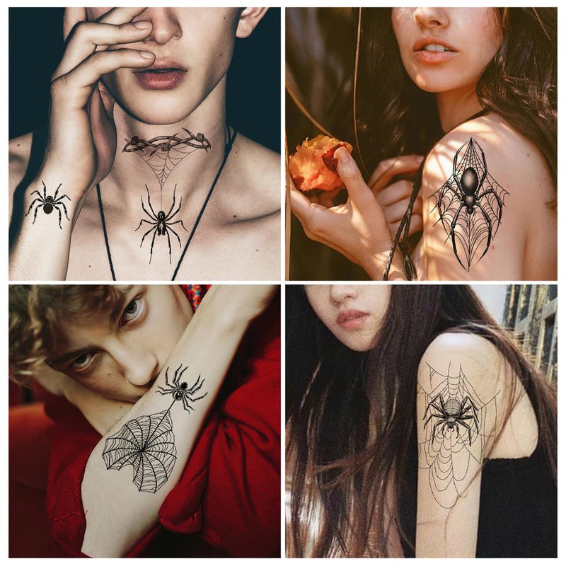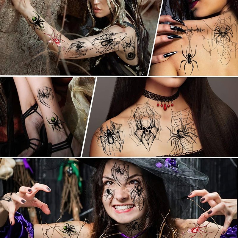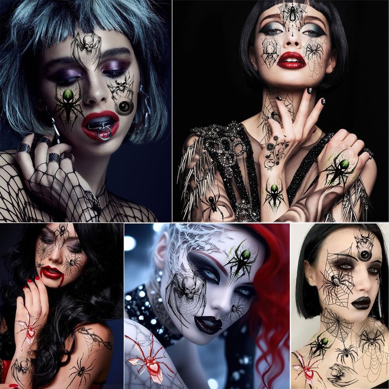 - Halloween Spider Web Temporary Tattoo Stickers: 3D realistic spider face tattoos with different pattern designs, creepy but cute!