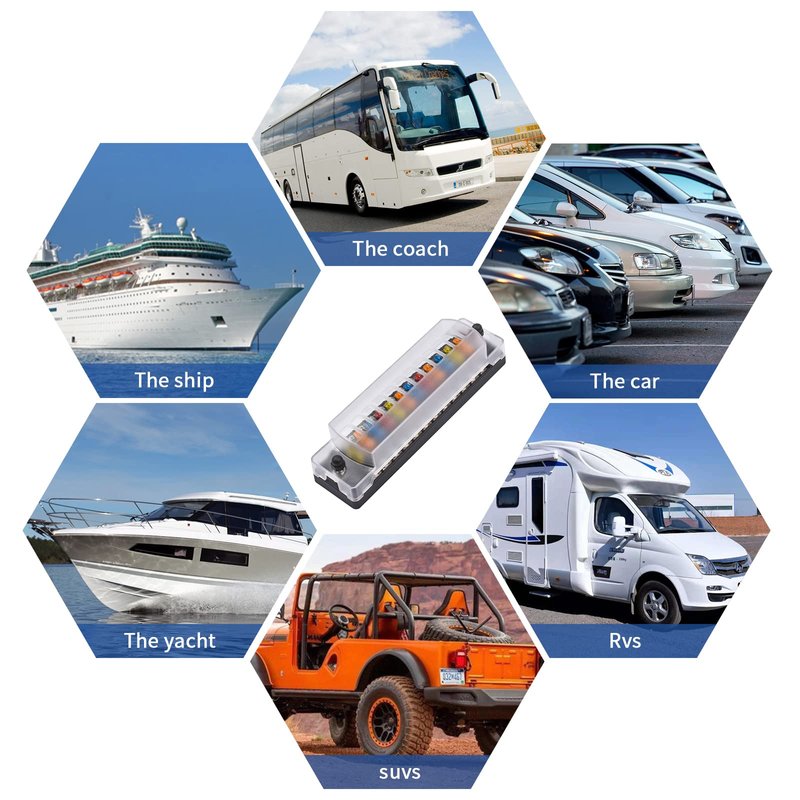 • 【Product installation range】 This 12-circuit blade fuse box is widely used in cars, buses, tankers, boats, trucks, SUVs, yachts, RVs, ships, etc.