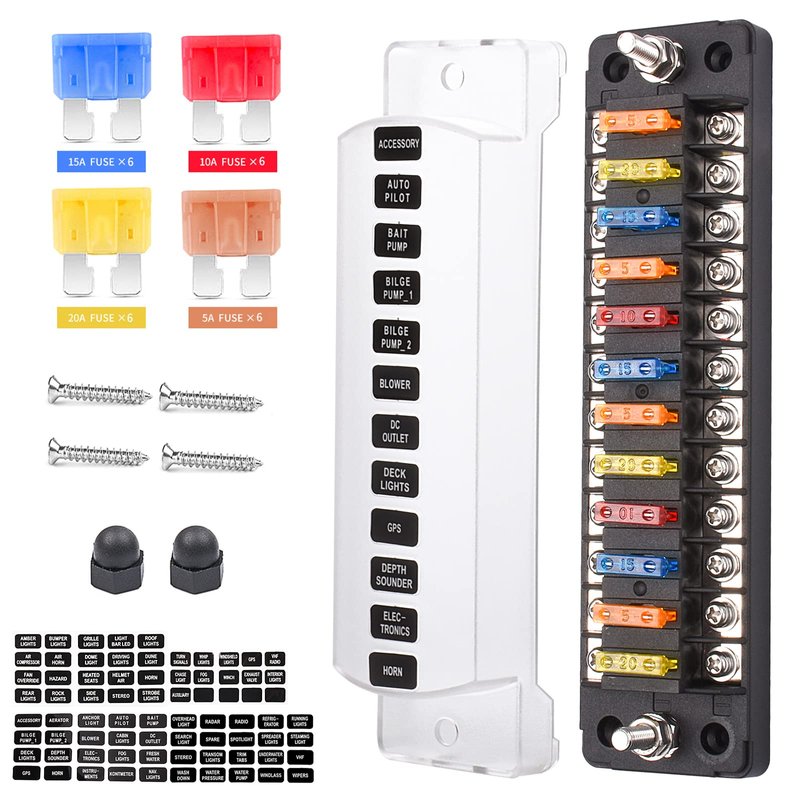 12 Way 12V Fuse Box Blade, 12Volt Fuse Block Wi...