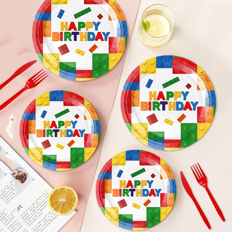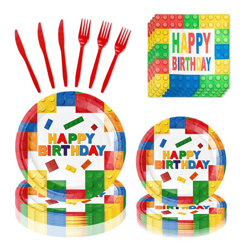 - 【Enjoy the Building Blocks Party】Impress your guests by hosting a memorable building blocks-themed event. Tableware set are completely disposable so no need to worry about cleanup! Save time and enjoy the party with your guests at the Building Block party!