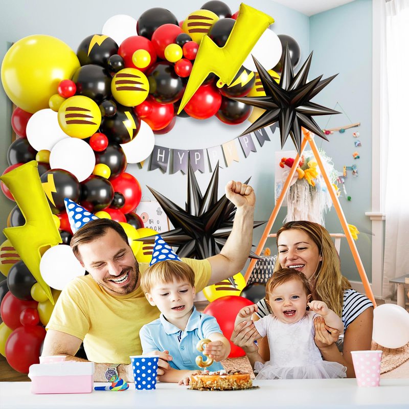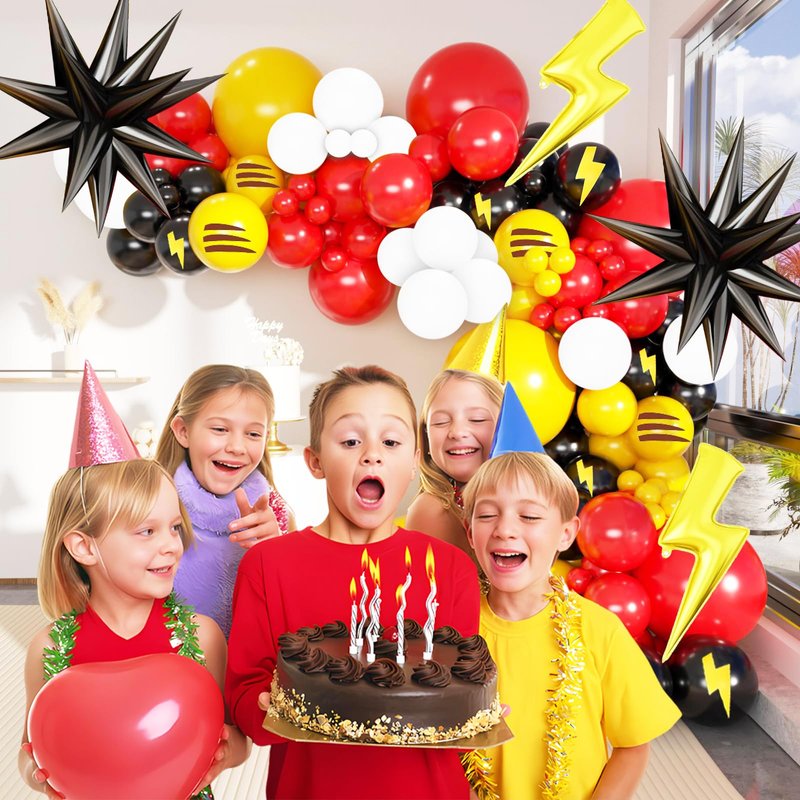 120 Pcs Red Black Yellow balloon garland Arch Kit, Lightning Print Balloons for Cartoon Ball Themed Birthday Party Decorations Boys Girls Gatherings Party Supplies