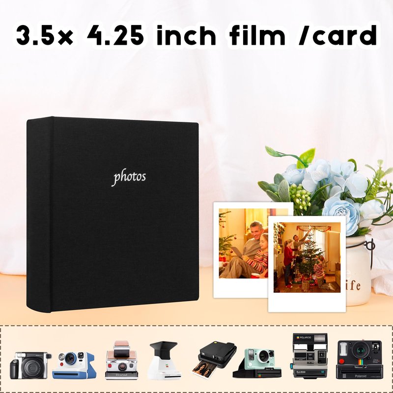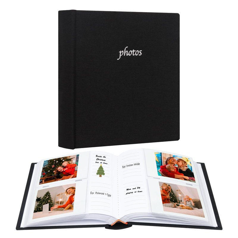 120 Photos Album with Memo Areas for Fujifilm Instax Wide 300 Camera,Linen Cover,Photo Book for Polaroid Now+/Now/I type/OneStep+/600 Instant Film Camera, POP Lab Instant Print Camera (Black)