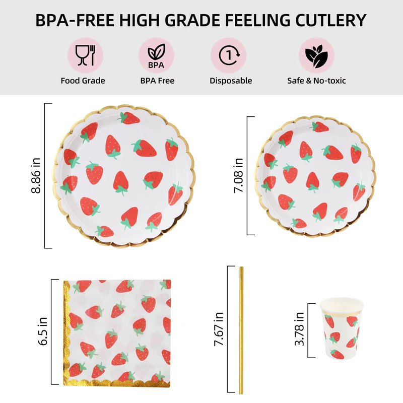 - 【Unique Design】: Strawberry disposable tableware set, white paper with strawberry pattern will be a big hit on the table, add class and high end to your party. This theme party all night can give guests leave deep impression.