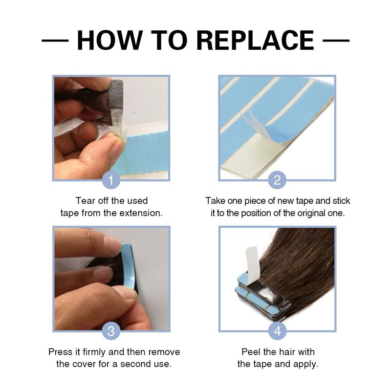 - Invisibility&Replaceable: extension tape tabs are sticky and can hide well with the hair extension, also they will stay in a place and are great for using them as new or replacement.