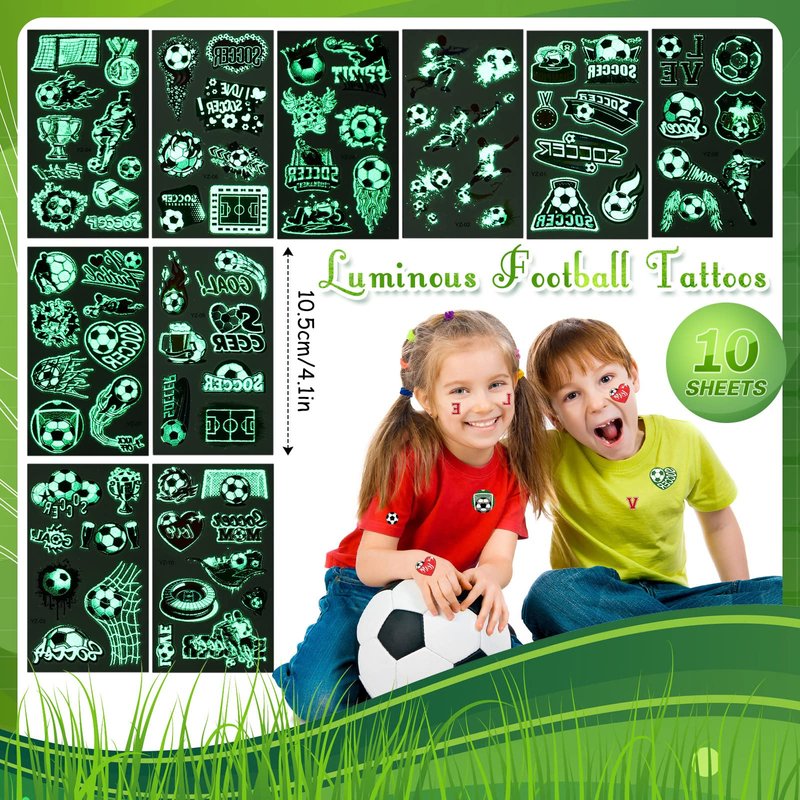 - Soccer Theme Decorations: soccer sticker and tattoo sets are coordinated with the theme of soccer, using different kinds of soccer and colors, such as black and green, vivid, exquisite and elaborate, adding more fun to soccer birthday celebrations and parties, and creating a more joyful holiday party