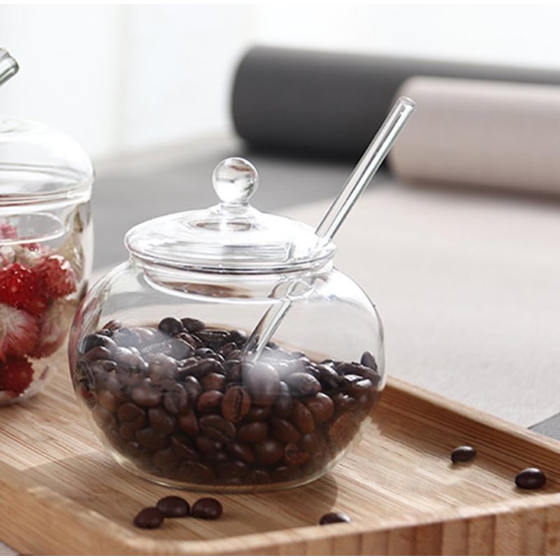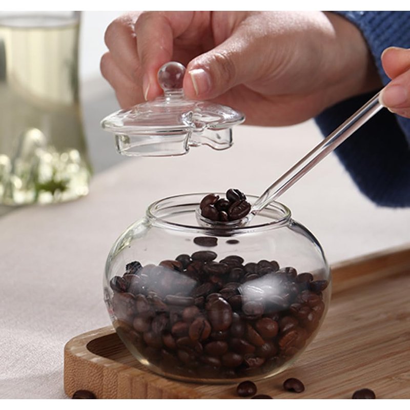 123Arts Clear Glass Sugar Bowl With Lid and Sugar Serving Spoon