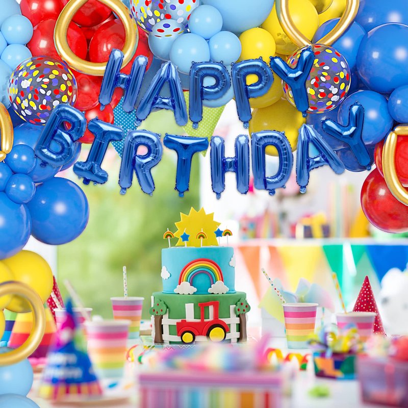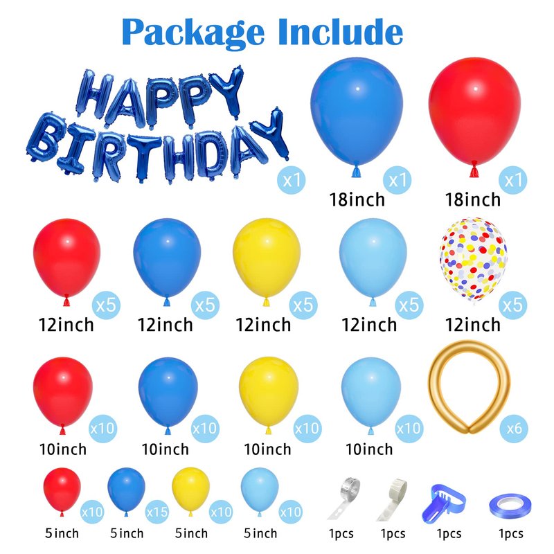 - High Quality: This red yellow blue balloons garland are made of high quality latex, which is thick, of good quality and not easy to crack. HAPPY BIRTHDAY Balloons are high-quality, ultra-shiny foil balloons that inflate easily and self-seal to maintain their shape.