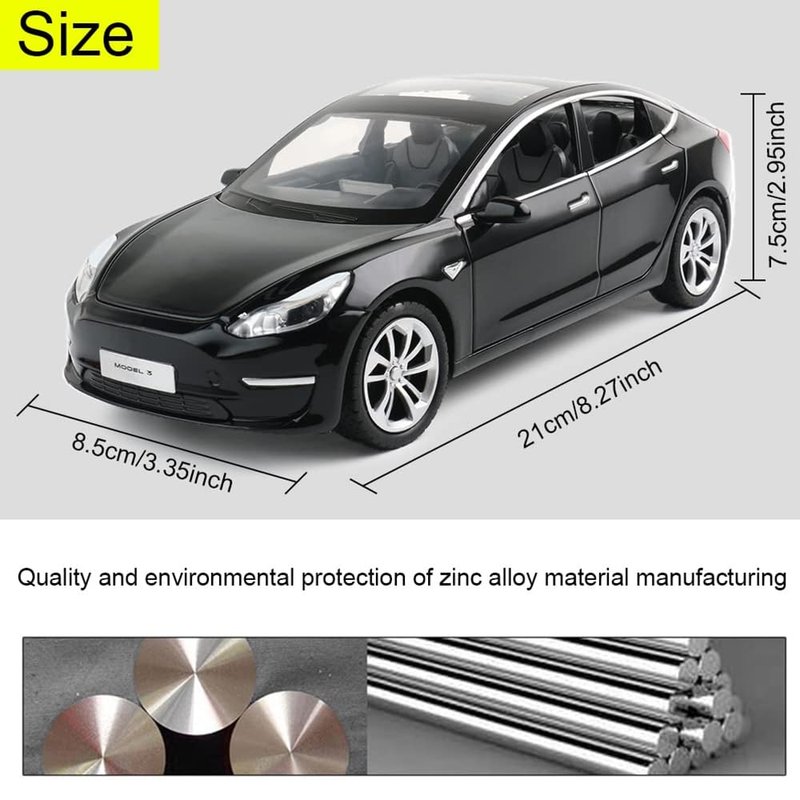 1/24 Diecast Model 3 Toy Car, Alloy Casting Model 3 Model Car Pull Back Collectible Vehicles with Sound and Light, 6 Open Doors, Model 3 Diecast Model Car Toy for Kids Adults (Black)