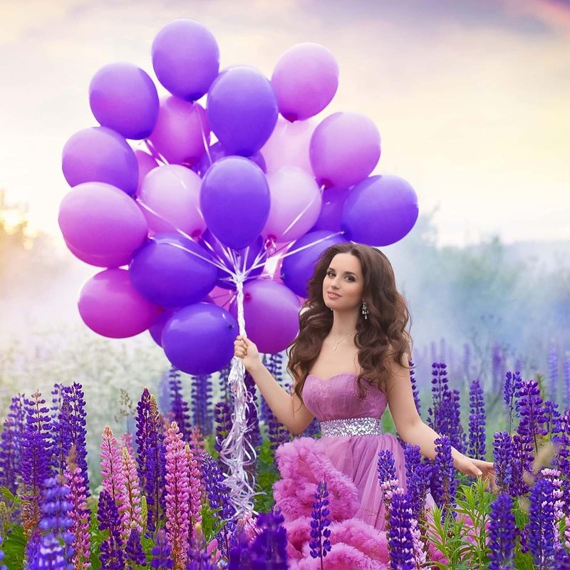 - 【Party Balloons Decorations Set】Our balloon decorations set includes 4PCS 18IN Purple Balloons,35PCS 12IN Purple Balloons,30PCS 10IN Purple Balloons,60PCS 5IN Purple Balloons,Two rolls of ribbon,7 PCS Double-sided tape. The sufficient number of baloon is enough for you to decorate a unique party and make any dull space full of vitality and joy.