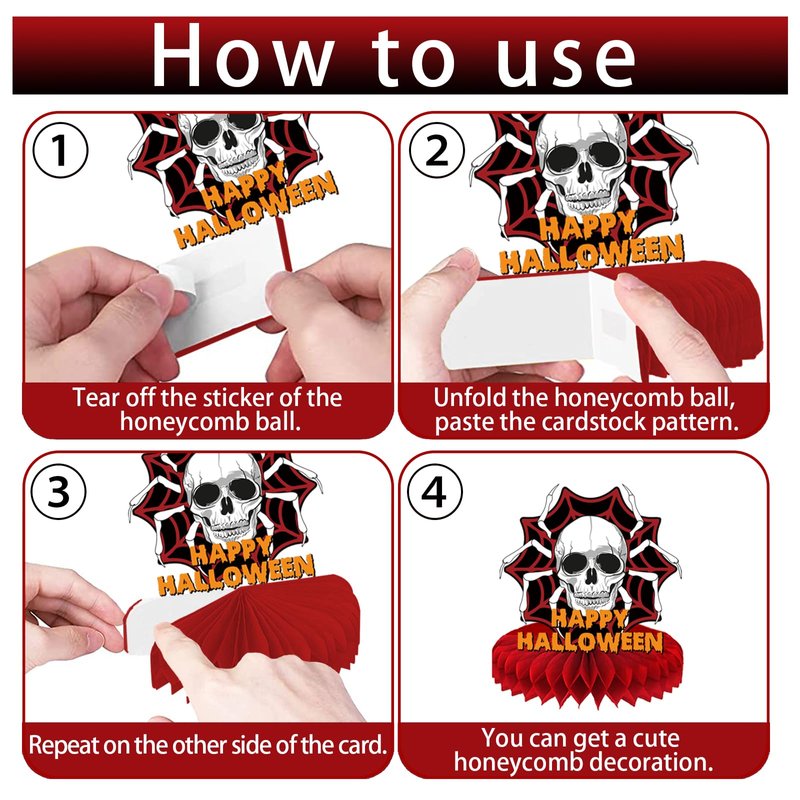 - The easiest way to use: Step1, tear off the sticker of the honeycomb ball. In the second step, glue the honeycomb ball to the fixed area on the card. Step 4, finally put it on the table. It's easy and you can save a lot of time.