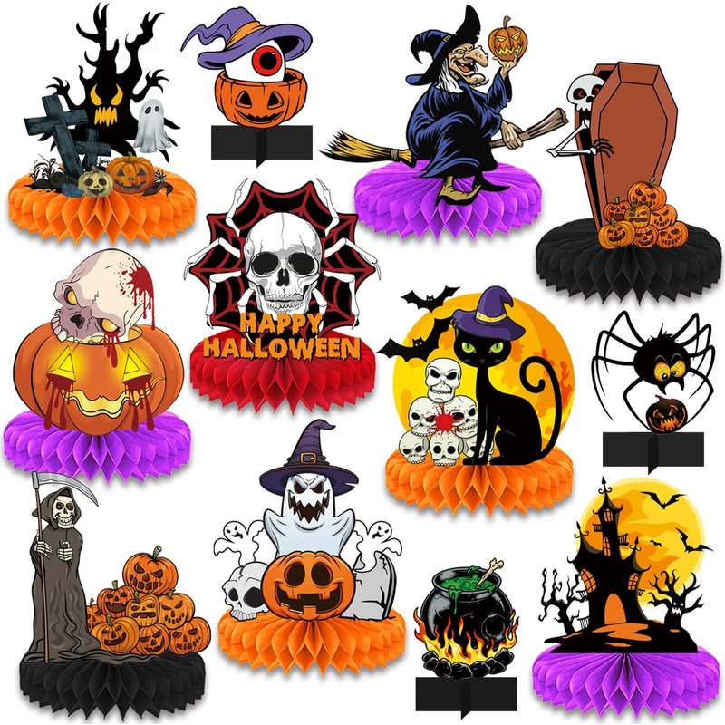 12pcs Halloween Decorations Honeycomb Centerpieces,Black Orange Bloody Halloween Centerpieces ,Tables Toppers Party Decorations Supplies, Halloween Table Sign Decor