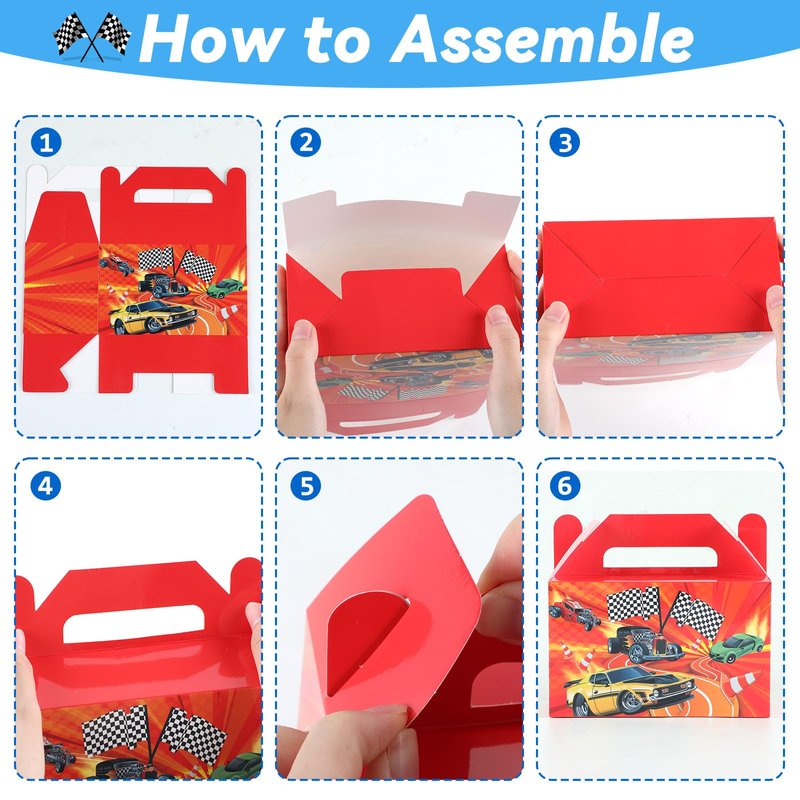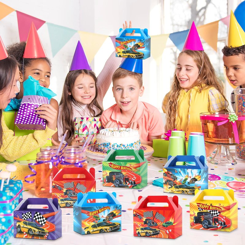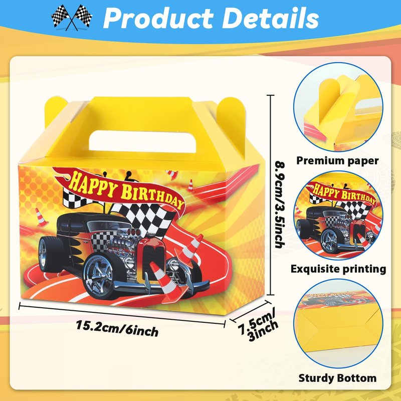 - Package includes: You'll get 12pcs of race car birthday party gift boxes. The size is 6 x 3.5 x 3inches. Hot car birthday folding paper boxes add an element of surprise and delight, enhancing the overall gifting experience, and creating anticipation and excitement when the recipient unveils the treat inside.