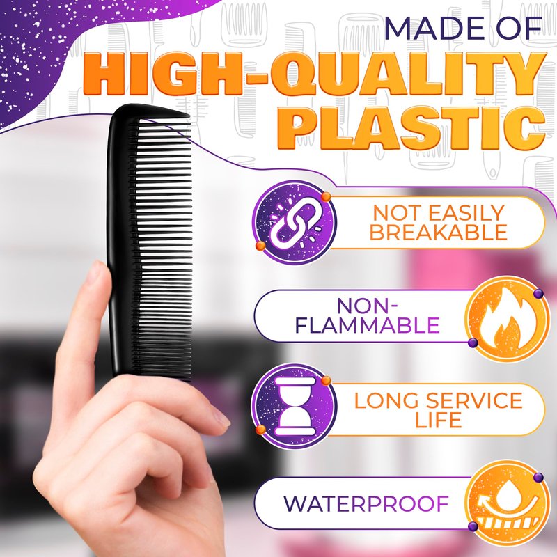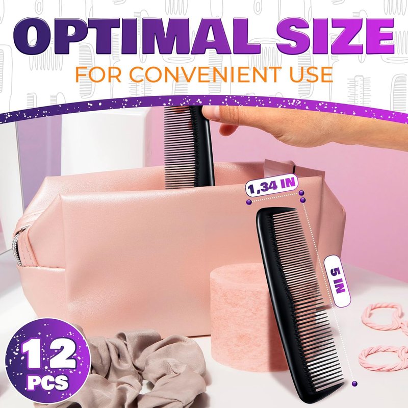 - Package Included in Pack of Combs: Each pack contains 12 black travel combs, making them ideal for barbers, hair stylists, and personal use. Each comb measures 1.34 inches in length and 5 inches in width, offering a compact and portable grooming solution.