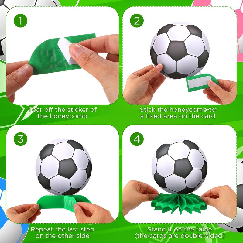 - ⚽【Easy to Use】There is a sticker on each soccer party decorations centerpiece that helps you fix. These soccer ball honeycomb centerpieces are super easy to assemble and work perfectly for a surprise sports themed birthday party or soccer theme party. You can put the soccer centerpieces table decorations on the table directly, you can also hang them.