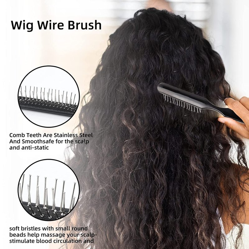 - Wig Wre Brush: made of plastic material and stainless steel teeth,smooth & anti-static ball-tip can be gets out knots & brushes through natural thick curly hair frizz,It can effectively help you solve the problem of curly hair,restore your hair to its original smooth and neat state.