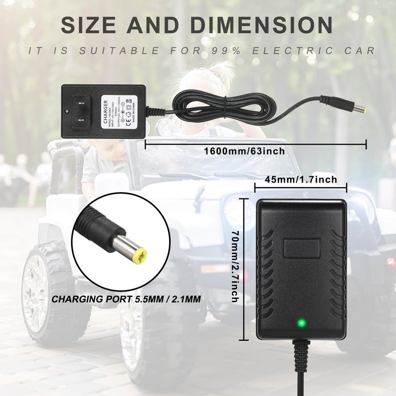- 【Compatibility】Support all Best Choice Products 12V round hole charging port Kids Electric Ride On Car, 12V Battery Charger for Children Ride On Toys Jeep Kid Trax Dynacraft Kids Jeep Car Mercedes-Benz Truck Audi Range Rove BMW I8 Kidzone Bumper Car Charger