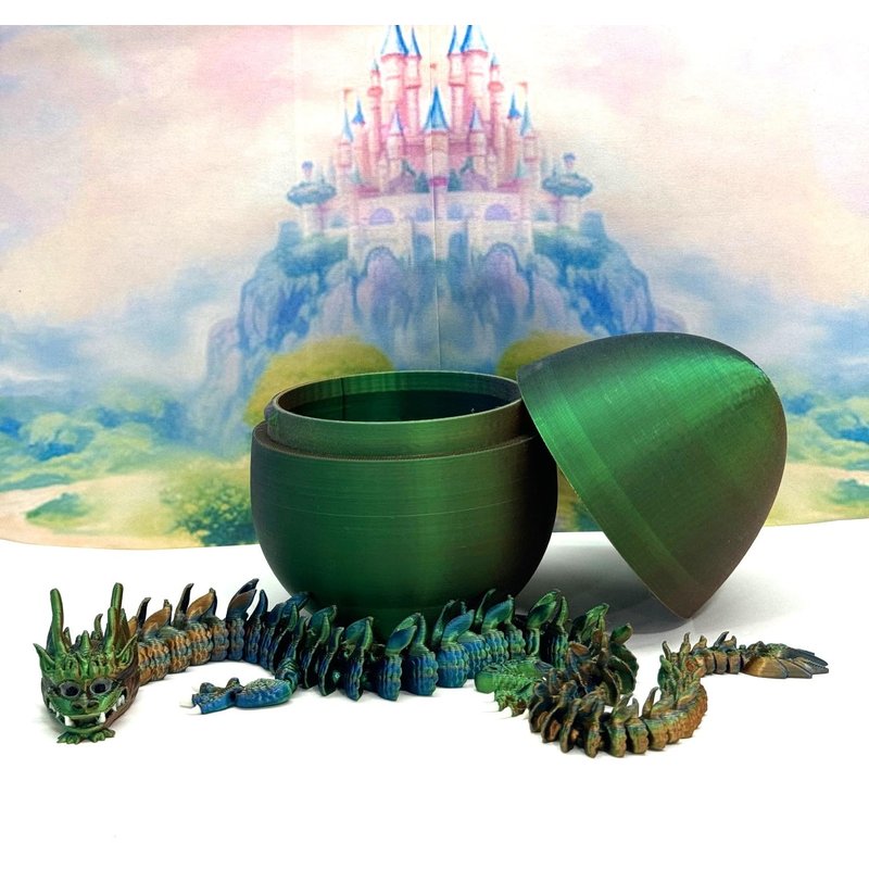 3D Printed Articulated Imperial Dragon Dragon with Dragon Egg - a mystical creature that brings a touch of fantasy to your world. Unveil the mystery of this Orange Blue Green Dragon, a captivating fusion of elegance and fantasy. This dragon reveals itself with a symphony of colors - a testament to its magical heritage. ------- Small Components Advisory: ------- Please note that this product may contain small components and might not be suitable for very young children. Given the characteristics of 3D printing, there is a potential for small components to detach if handled aggressively or dropped. Therefore, we advise against allowing younger children to interact with the dragon. Please consider that 3D printed objects might include minor imperfections such as layer lines. These are a natural and inherent aspect of the printing process. We strive to produce the highest quality items, and these imperfections contribute to the unique character of each piece. Remember the unique creation of each dragon, crafted exclusively for you. The color selections available are depicted in the provided photos. Please be aware that variations in color may occur due to discrepancies in filament production and the characteristics of the monitor or screen you are utilizing to view the listing. Additionally, the arrangement of prints using multi-colored filament rolls can influence color distribution. ------- Licensing Information: ------- Authorized Design: NOHo3D holds the official authorization for the production of this exquisite design created by FlexiFactory.