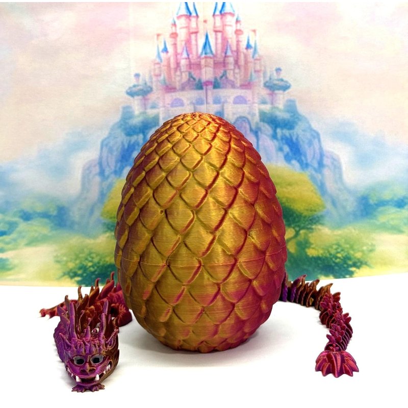 3D Printed Articulated Imperial Dragon Dragon with Dragon Egg - a mystical creature that brings a touch of fantasy to your world. Unveil the mystery of this Red Purple Gold Dragon, a captivating fusion of elegance and fantasy. This dragon reveals itself with a symphony of colors - a testament to its magical heritage. ------- Small Components Advisory: ------- Please note that this product may contain small components and might not be suitable for very young children. Given the characteristics of 3D printing, there is a potential for small components to detach if handled aggressively or dropped. Therefore, we advise against allowing younger children to interact with the dragon. Please consider that 3D printed objects might include minor imperfections such as layer lines. These are a natural and inherent aspect of the printing process. We strive to produce the highest quality items, and these imperfections contribute to the unique character of each piece. Remember the unique creation of each dragon, crafted exclusively for you. The color selections available are depicted in the provided photos. Please be aware that variations in color may occur due to discrepancies in filament production and the characteristics of the monitor or screen you are utilizing to view the listing. Additionally, the arrangement of prints using multi-colored filament rolls can influence color distribution. ------- Licensing Information: ------- Authorized Design: NOHo3D holds the official authorization for the production of this exquisite design created by FlexiFactory.