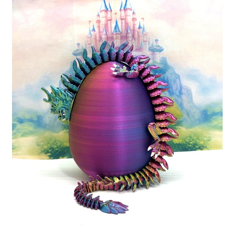 3D Printed Articulated Imperial Dragon Dragon with Dragon Egg - a mystical creature that brings a touch of fantasy to your world. Unveil the mystery of this Red Yellow Blue Dragon, a captivating fusion of elegance and fantasy. This dragon reveals itself with a symphony of colors - a testament to its magical heritage. ------- Small Components Advisory: ------- Please note that this product may contain small components and might not be suitable for very young children. Given the characteristics of 3D printing, there is a potential for small components to detach if handled aggressively or dropped. Therefore, we advise against allowing younger children to interact with the dragon. Please consider that 3D printed objects might include minor imperfections such as layer lines. These are a natural and inherent aspect of the printing process. We strive to produce the highest quality items, and these imperfections contribute to the unique character of each piece. Remember the unique creation of each dragon, crafted exclusively for you. The color selections available are depicted in the provided photos. Please be aware that variations in color may occur due to discrepancies in filament production and the characteristics of the monitor or screen you are utilizing to view the listing. Additionally, the arrangement of prints using multi-colored filament rolls can influence color distribution. ------- Licensing Information: ------- Authorized Design: NOHo3D holds the official authorization for the production of this exquisite design created by FlexiFactory.