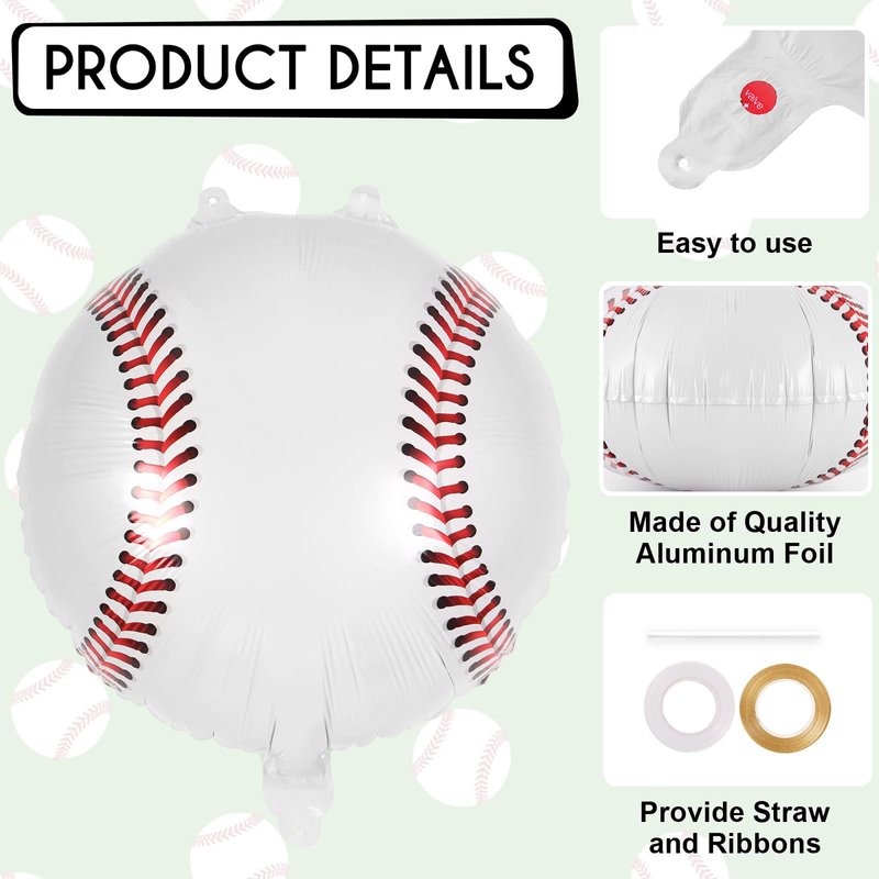 - ⚾Wide Application: These baseball foil balloons are suitable for various occasions, such as birthday party, baby shower, baseball games, sports competitions, team-building activities, and more. They can be used as decorations on walls, ceilings, tables, and doors to create a festive and sporty atmosphere.