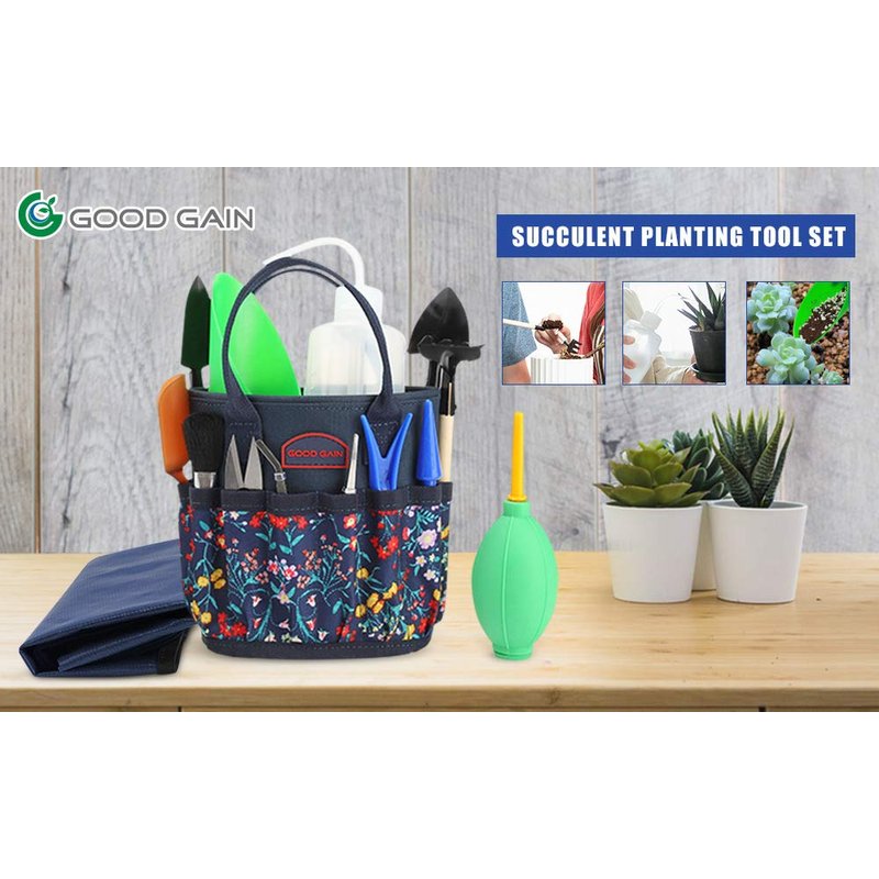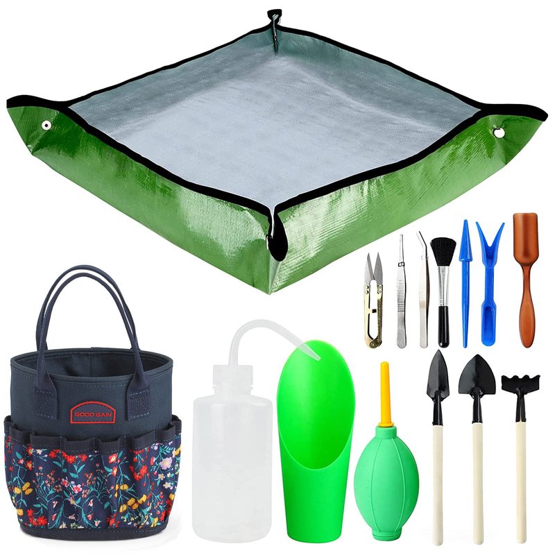 G Good Gain Succulent Kit Gardening Tool Set,with 13 Pieces Garden Hand Tools and 1 work mat.